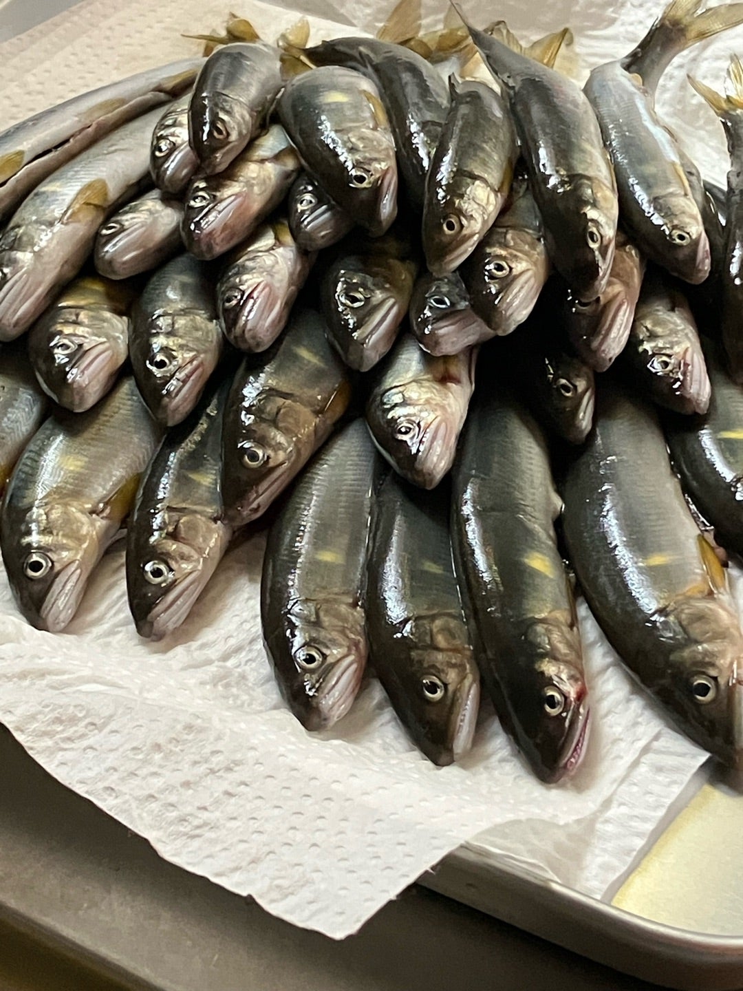 小鮎の塩焼き、頭から骨ごと食べれてカルシウムもバッチリです。笑